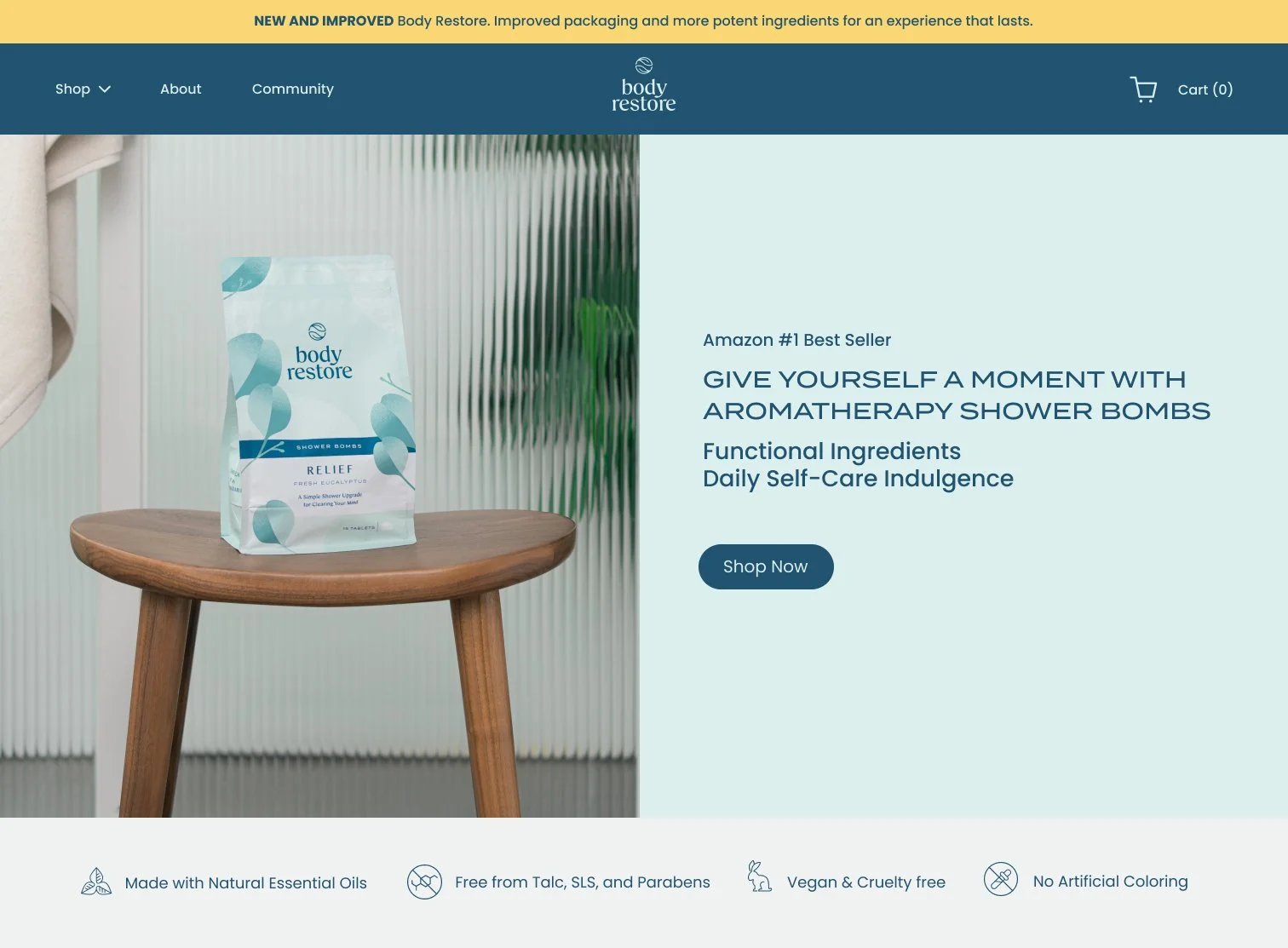 Body Restore is Amazon’s leading best-selling “shower bomb” brand. I assisted with their art direction/aesthetic shift and solely created the UX design for their website - In addition, I created assets for their Amazon store and advertisements.